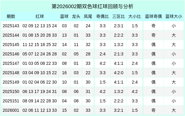 双色球2026001期开奖,本期奖号:红球02、06、11、12、13、33,蓝球15。